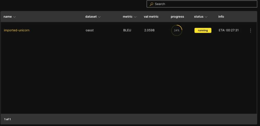 You can even evaluate your model before training begins, giving you an idea of the LLM backbone’s quality before you start fine-tuning it. You can choose from several metrics to evaluate your model, including the BLEU score, GPT3.5, and GPT4.
