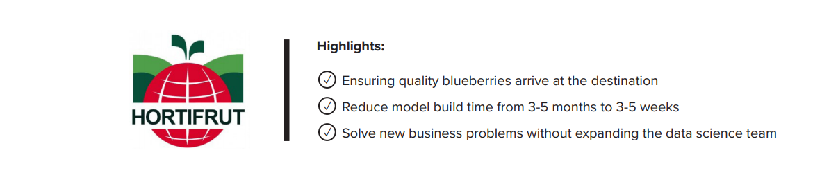 - Hortifrut is able to reduce the model development time from 3-5 months down to 3-5 weeks.