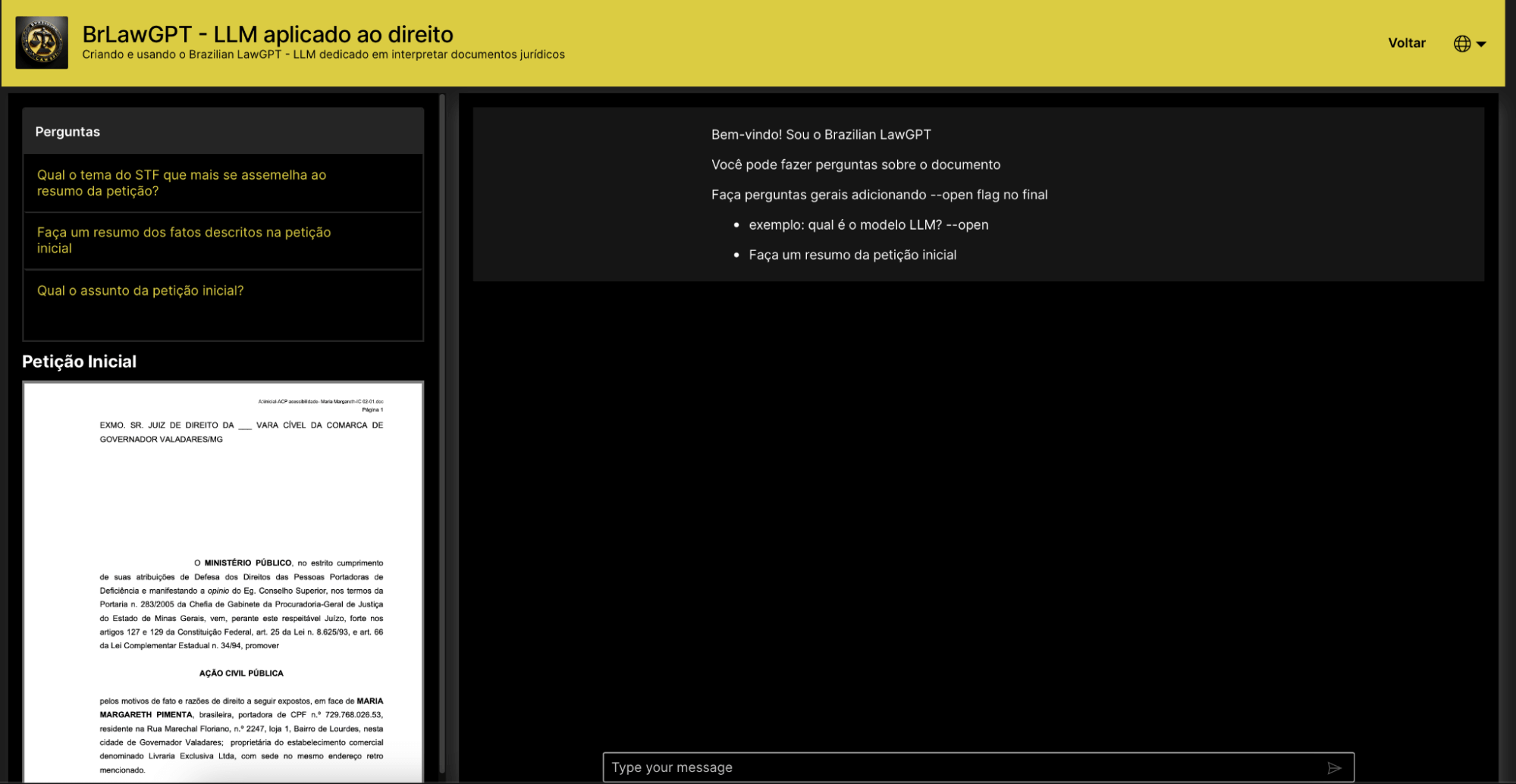 BrLawGPT is designed to streamline the study and interpretation of legal documents, particularly initial petitions in the Brazilian legal system. This application simplifies interactions with PDF documents, extracts valuable information, and enhances productivity across various use cases.