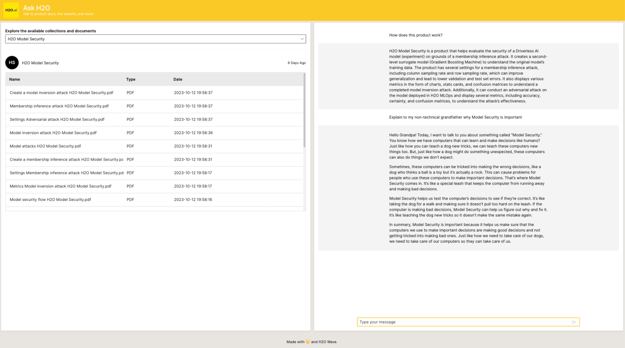 Ask H2O enables users to ask open-ended questions to H2O’s product documentation.