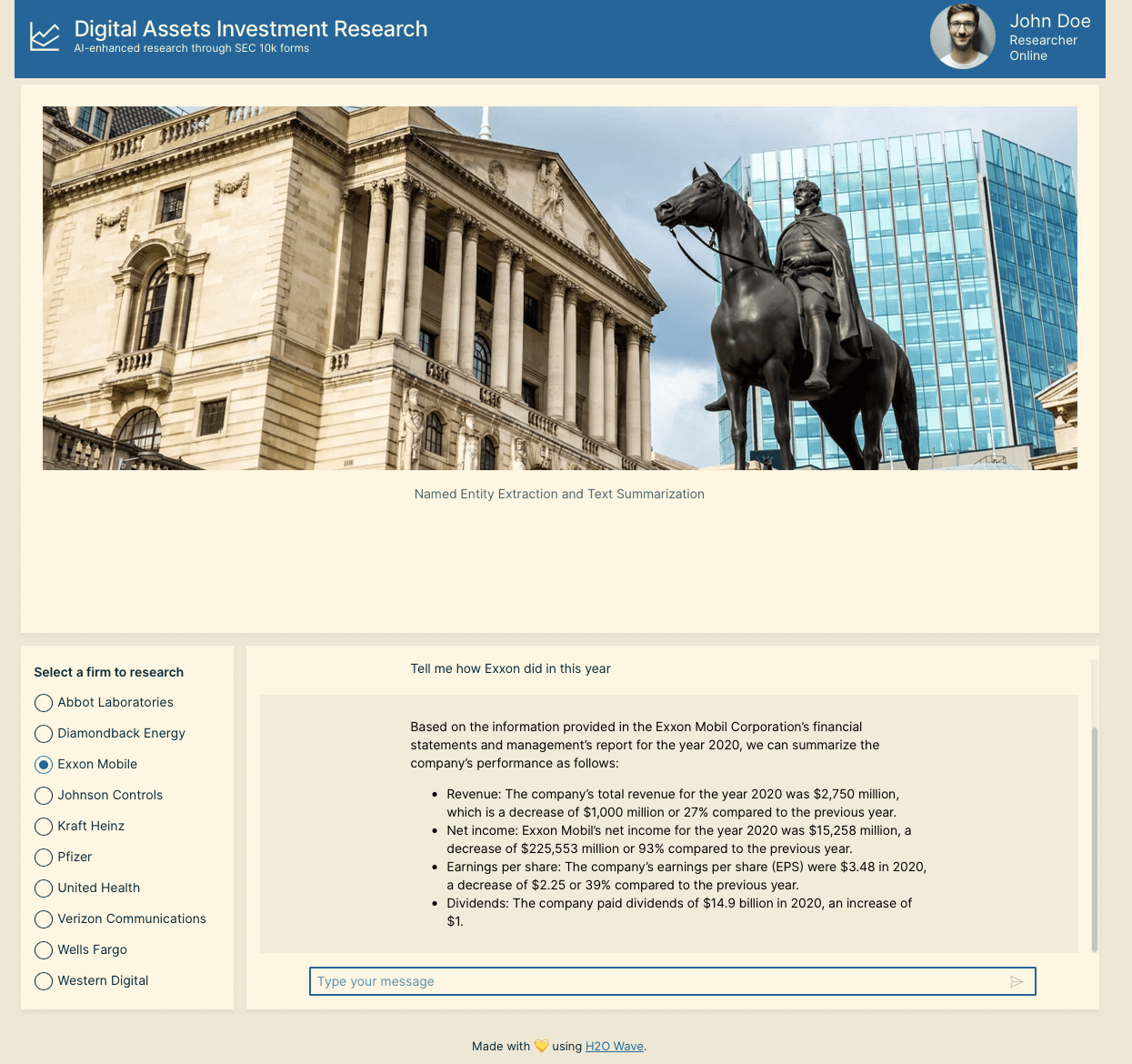 The H2O GenAI App Store is the go-to destination for those looking to understand the possibilities of Generative AI. You can visit today to explore the apps, or make an account to start using them today. Topics range from apps that help you plan your weekly meals to apps that help you understand the financial situation of public companies with new apps coming over time.